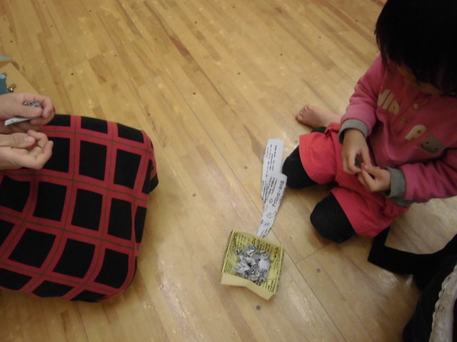 みんな大声で叫んで、自分の中のオニを追い出しました。