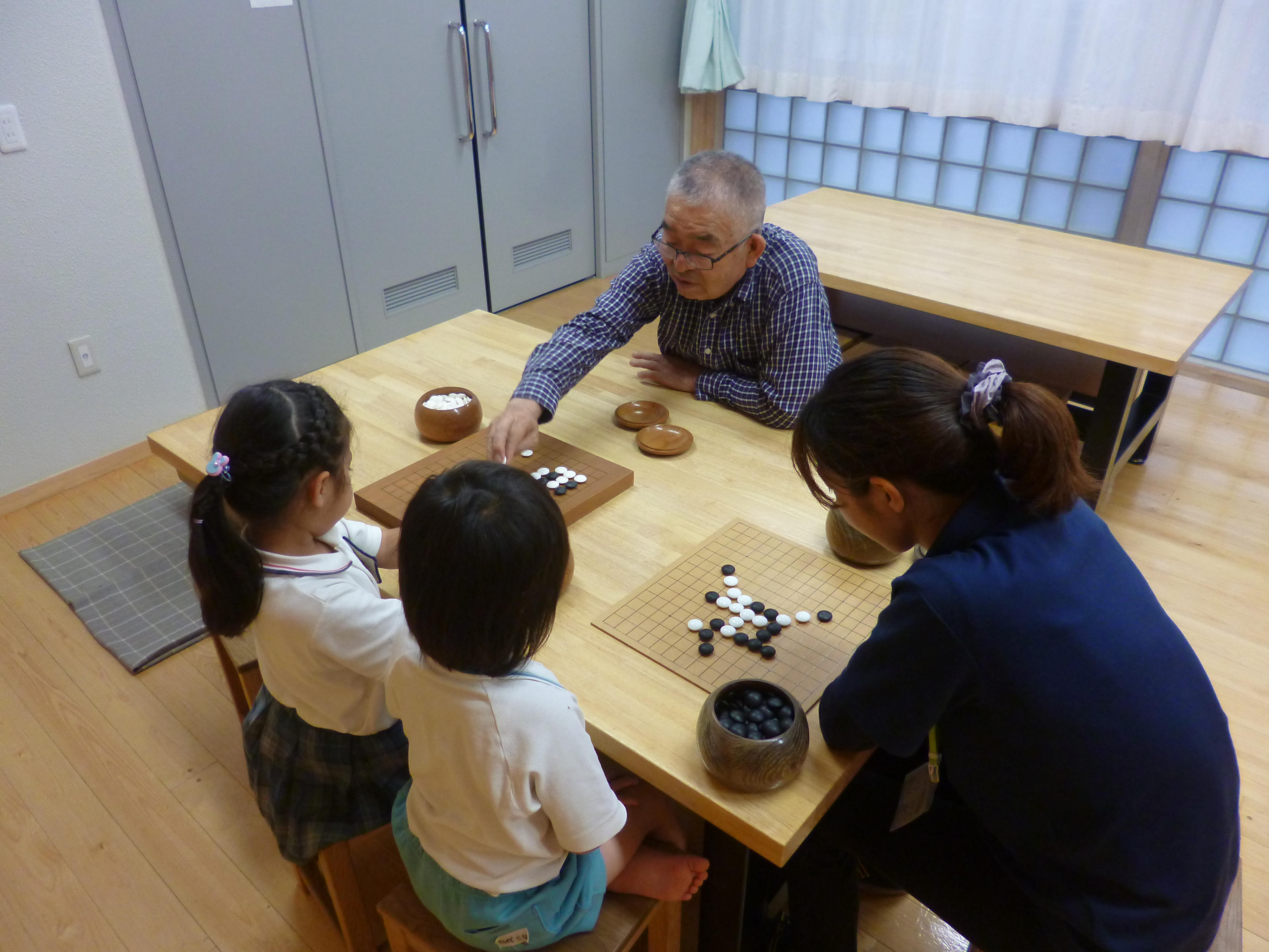 1人の女の子は先生の話を真剣に聞いて五目並べに挑戦!その次は囲碁!!長い時間集中して先生に教わっていました(^O^)