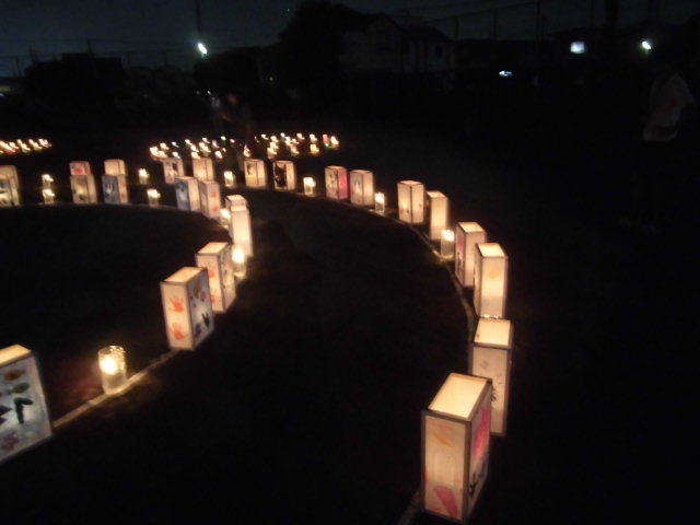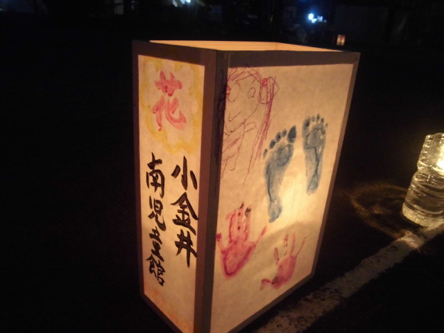 一生懸命作ったとうろうには、ロウソクの灯りがともり