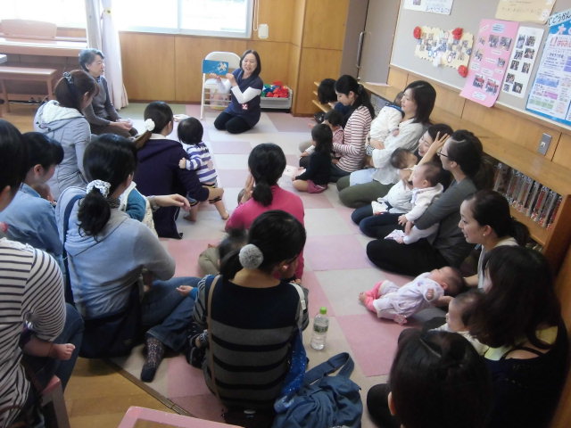 絵本が始まる前には、親子のふれ合い手遊びや、わらべ歌をしてくださり、